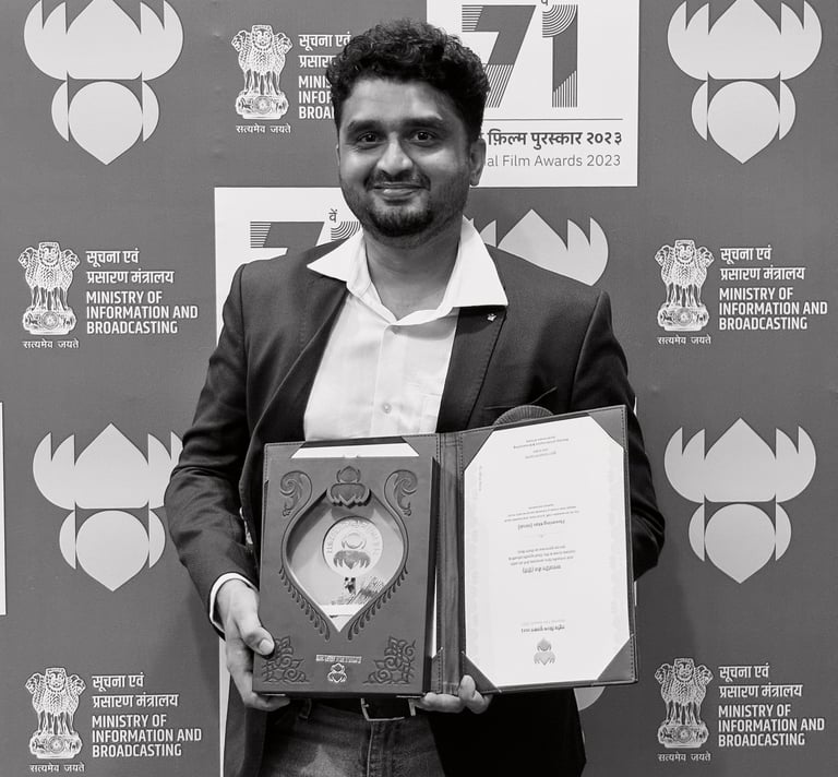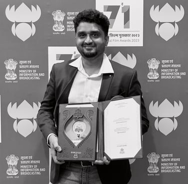 MY DIPLOMA FILM FLOWERING MAN WAS HONOURED WITH THE GOLDEN LOTUS FOR BEST NON-FEATURE FILM AT THE 71ST NATIONAL FILM AWARDS (2025). THE FILM IS A QUIET MEDITATION ON RESILIENCE AND TRANSFORMATION — A STORY CLOSE TO MY HEART, CRAFTED WITH CARE AND FAITH IN SIMPLICITY. RECEIVING THE AWARD WAS A DEEPLY HUMBLING EXPERIENCE, A REMINDER THAT HONESTY IN STORYTELLING ENDURES. IT BECAME THE PERFECT FAREWELL TO MY FTII JOURNEY — A CHAPTER CLOSING IN GOLDEN LIGHT, AND THE BEGINNING OF A NEW PATH BEHIND THE LENS, WHERE EVERY FRAME NOW FEELS LIKE BOTH A HOMECOMING AND A FRESH START.